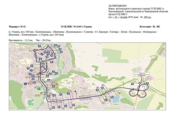 Маршрут №12 ТСЦ МВС № 6145. Для перевірки навичок керування ТЗ категорії B, BE.