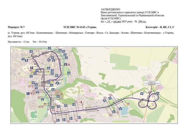Маршрут №7 ТСЦ МВС № 6145. Для перевірки навичок керування ТЗ категорії B, BE, С1, С.