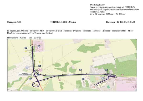 Маршрут №11 ТСЦ МВС № 6145. Для перевірки навичок керування ТЗ категорії B, BE, С1, С, D1, D.