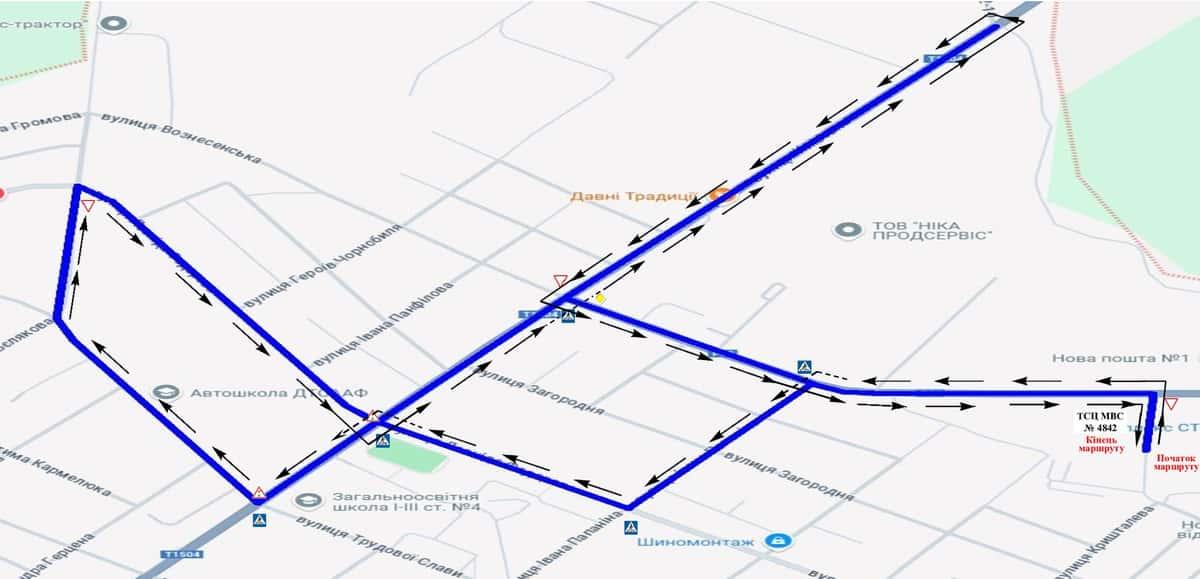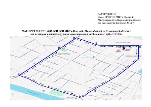 Маршрут №8 ТСЦ МВС № 4842. Для перевірки навичок керування ТЗ категорії С1, C, D1.