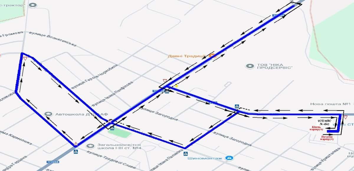 Маршрут №11 ТСЦ МВС № 4842. Для перевірки навичок керування ТЗ категорії C1, C, D1, D, CE.