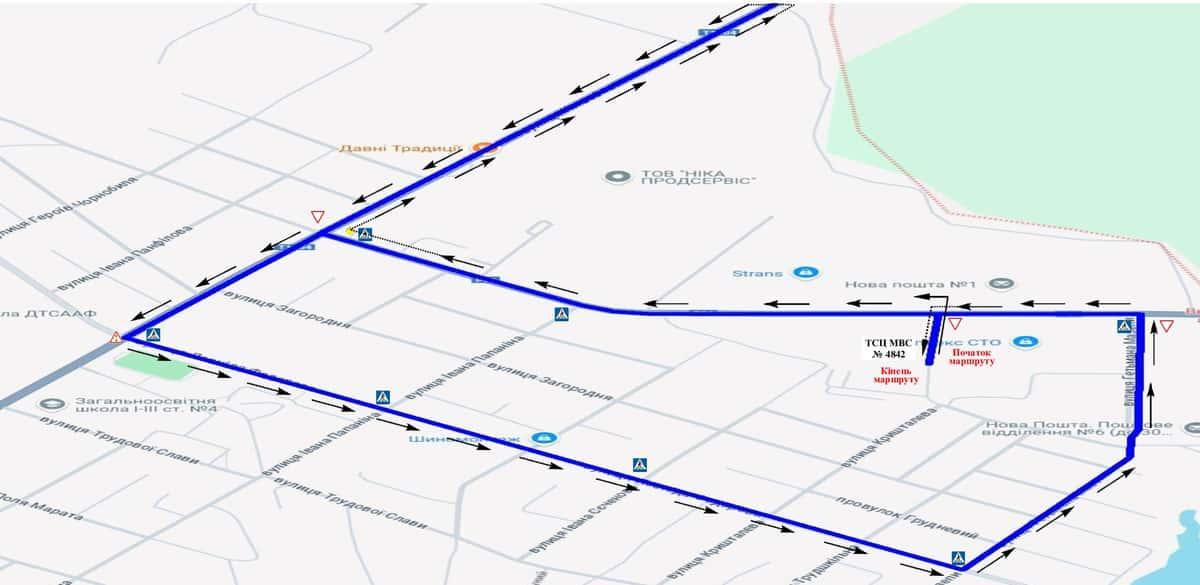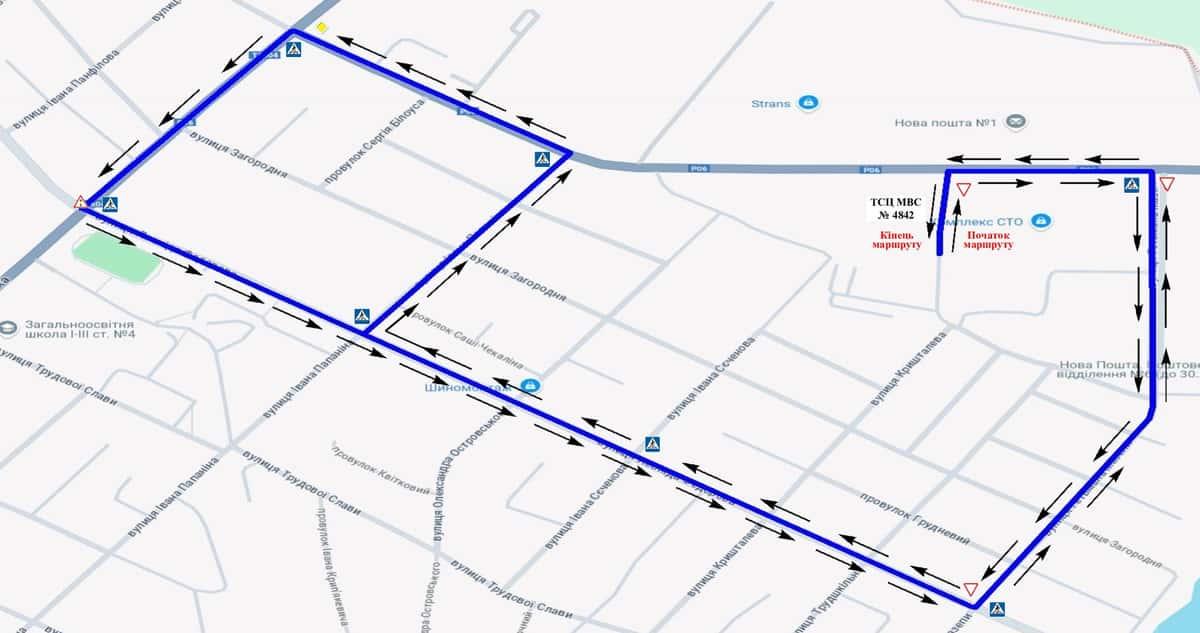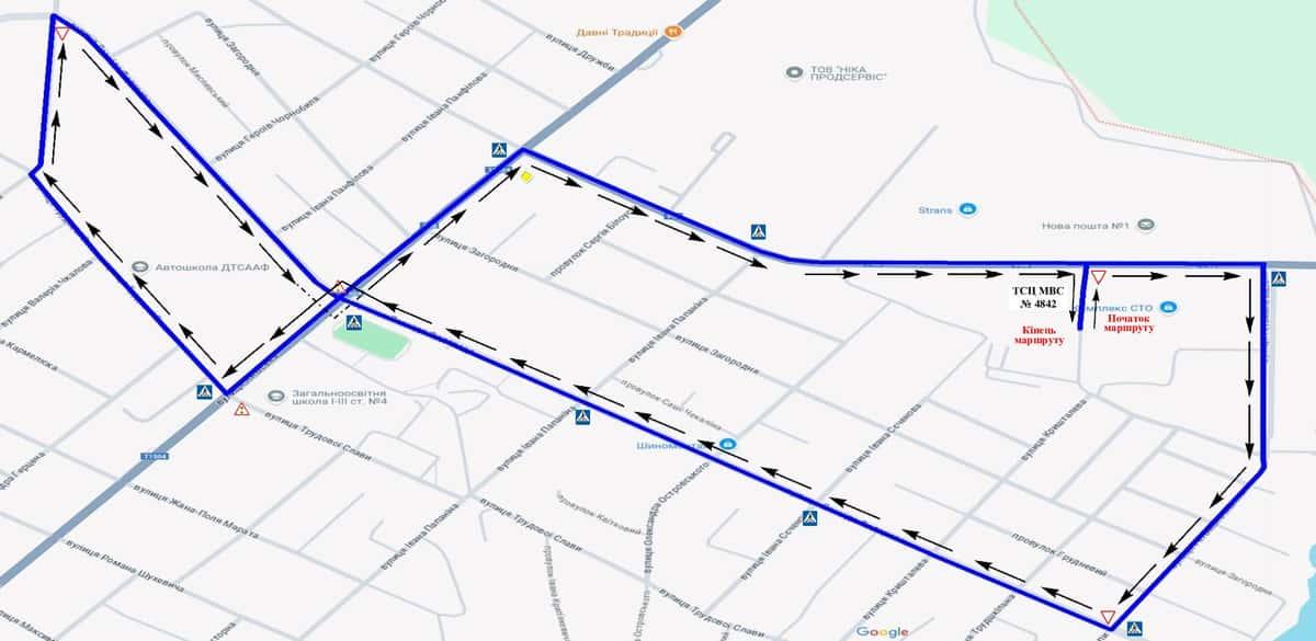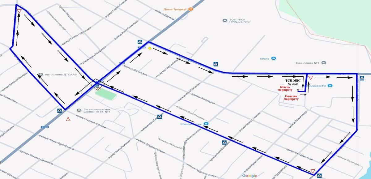 Маршрут №4 ТСЦ МВС № 4842. Для перевірки навичок керування ТЗ категорії B.