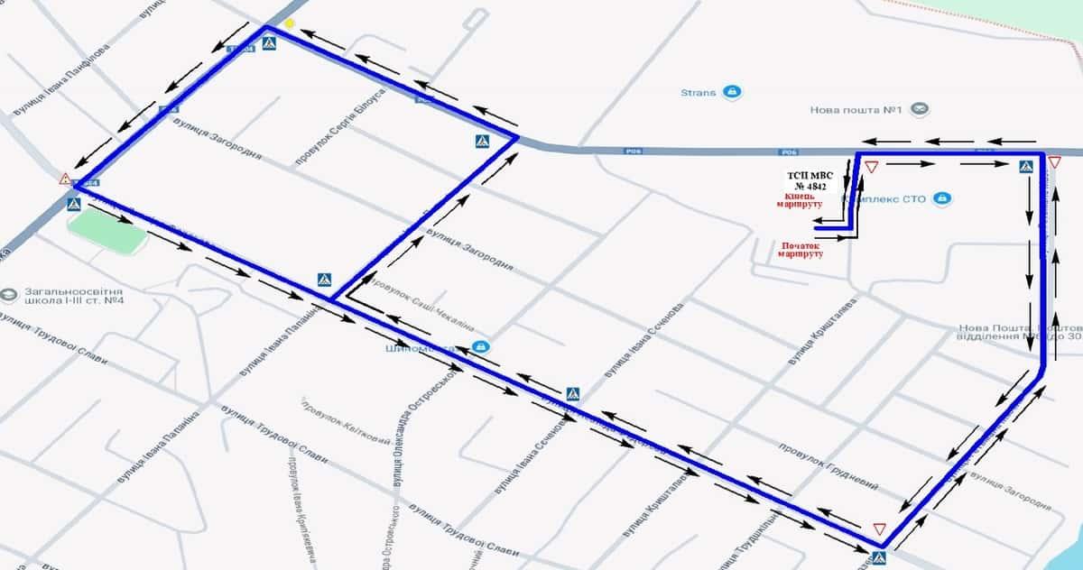 Первомайськ - Маршрути для перевірки навичок керування ТЗ