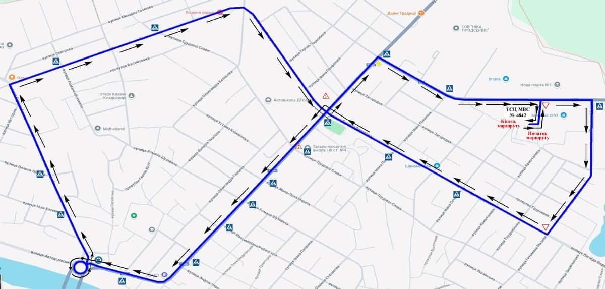 Маршрут №3 ТСЦ МВС № 4842. Для перевірки навичок керування ТЗ категорії B.