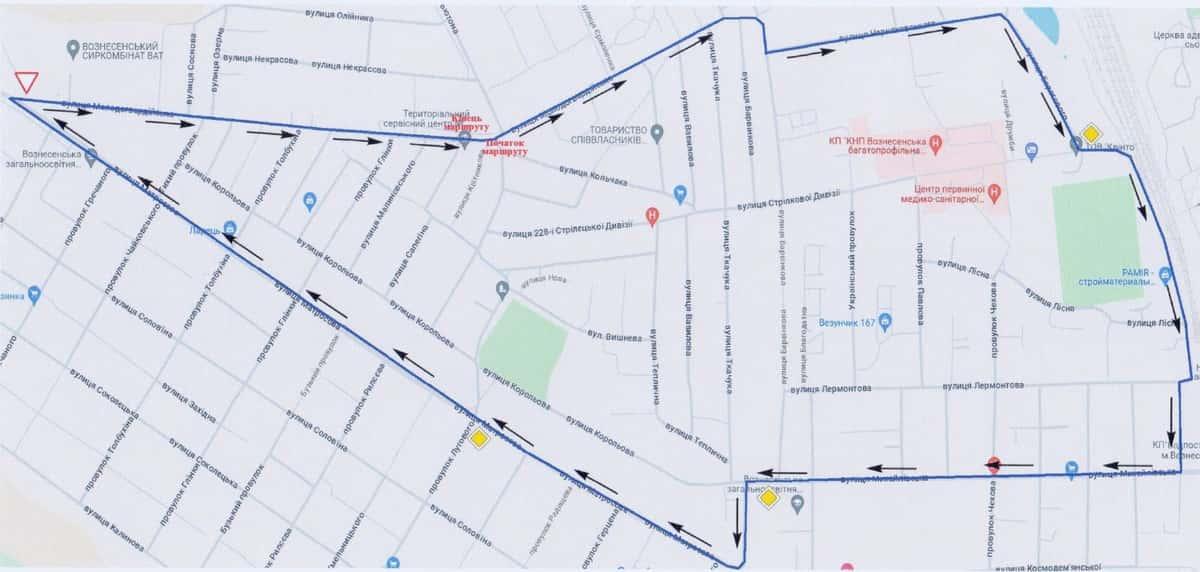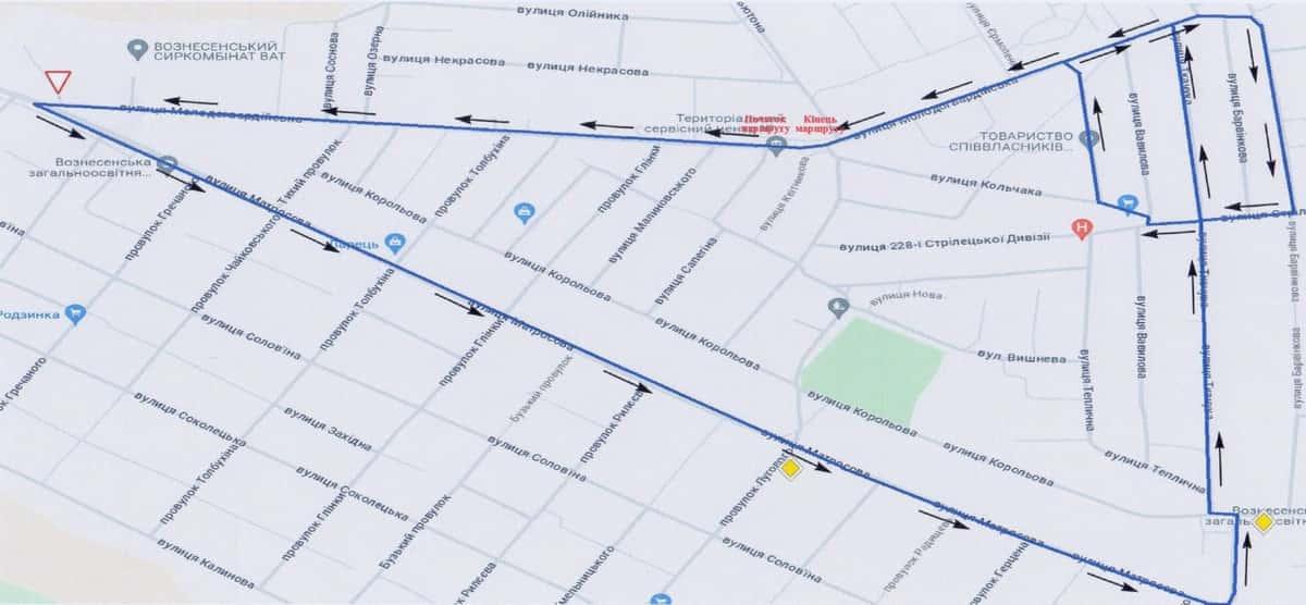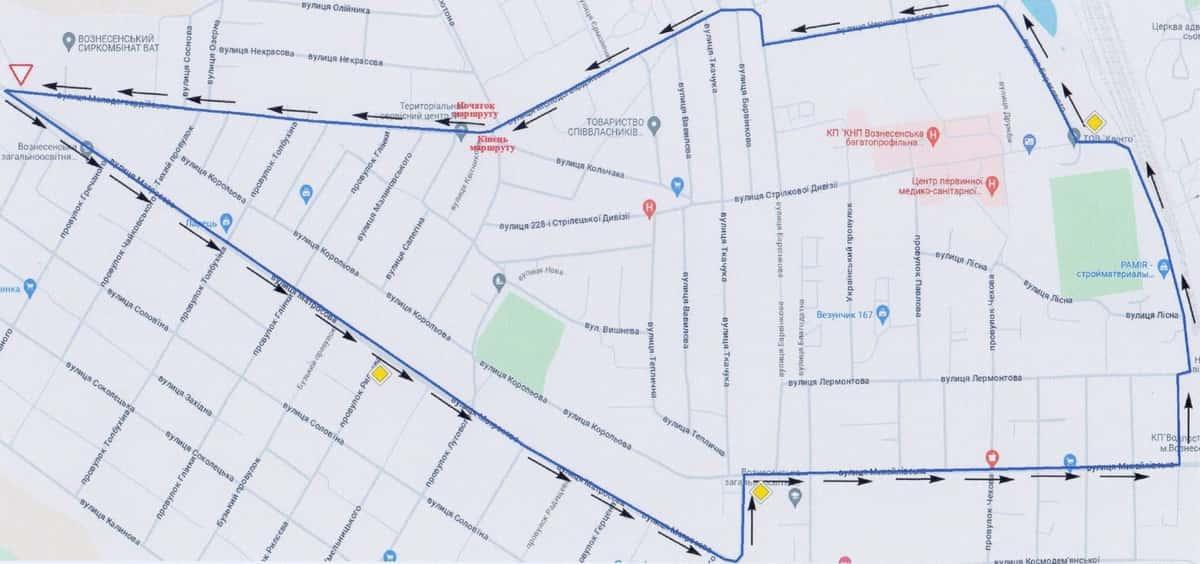 Вознесенськ - Маршрути для перевірки навичок керування ТЗ