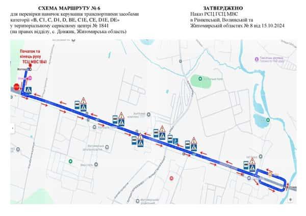 Маршрут №6 ТСЦ МВС № 1841. Для перевірки навичок керування ТЗ категорії B, C1, C, D1, D, BE, C1E, CE, D1E, DE.