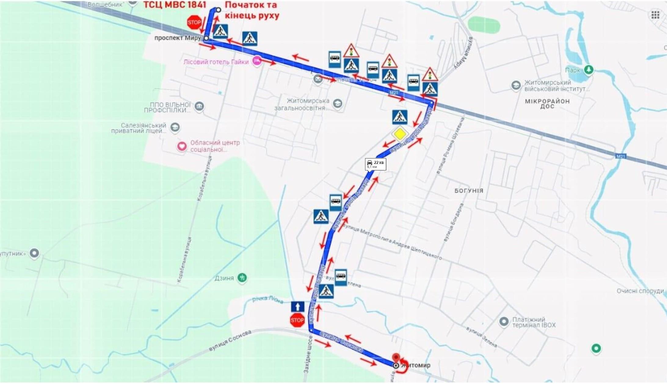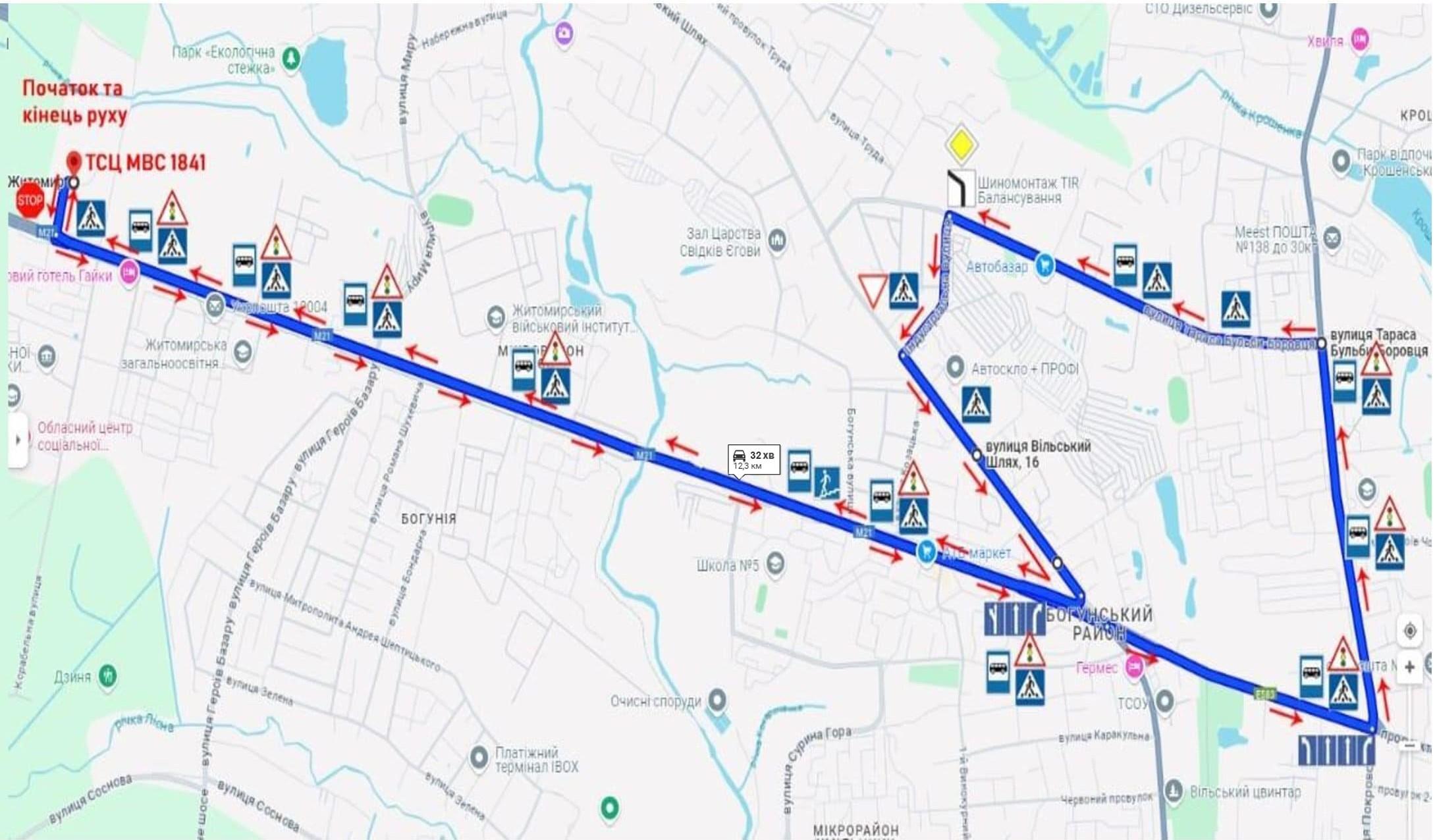 Маршрут №8 ТСЦ МВС № 1841. Для перевірки навичок керування ТЗ категорії B, D1, D, BE.