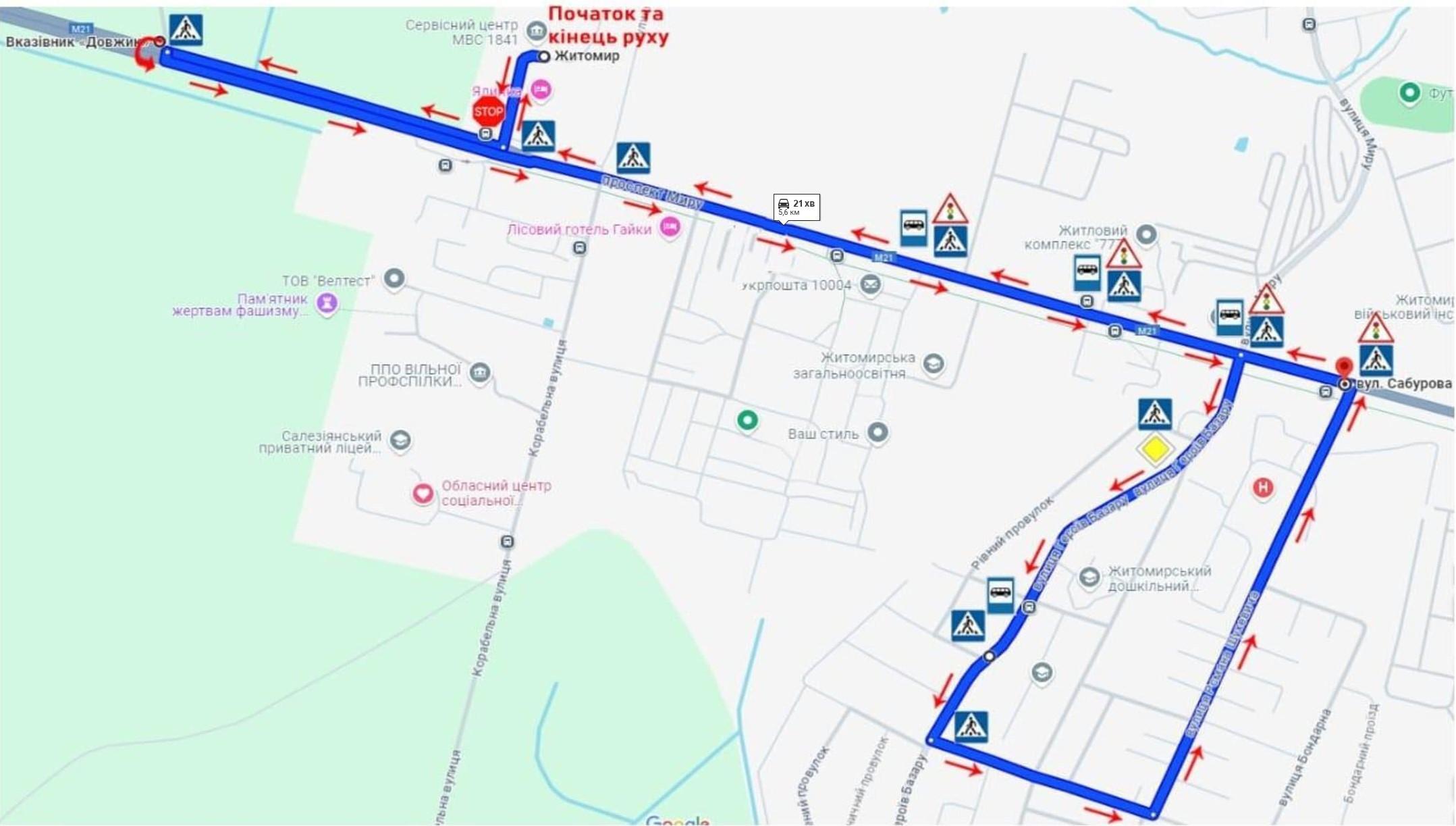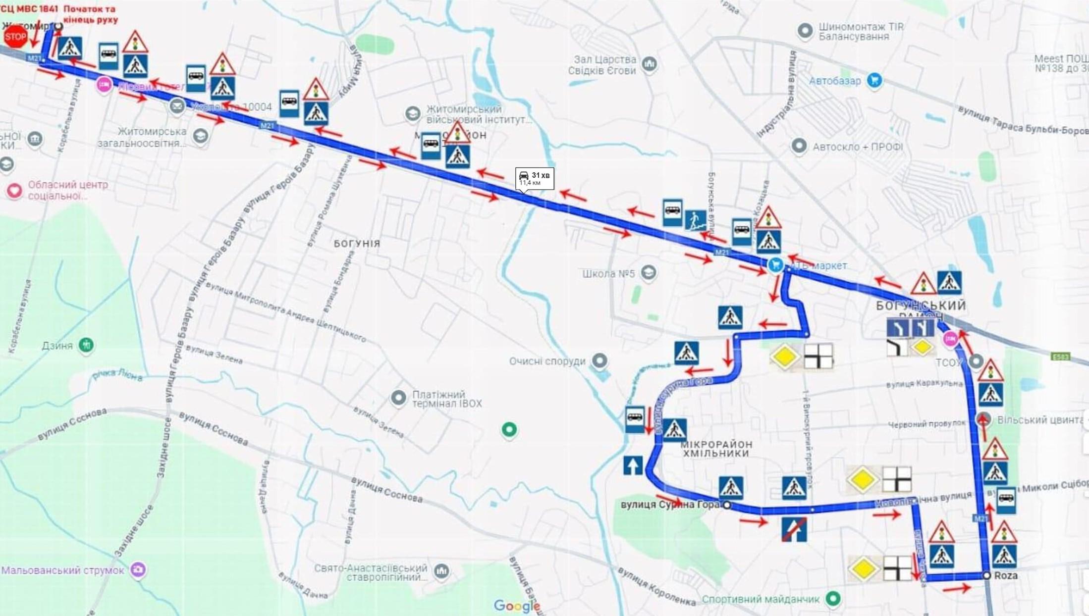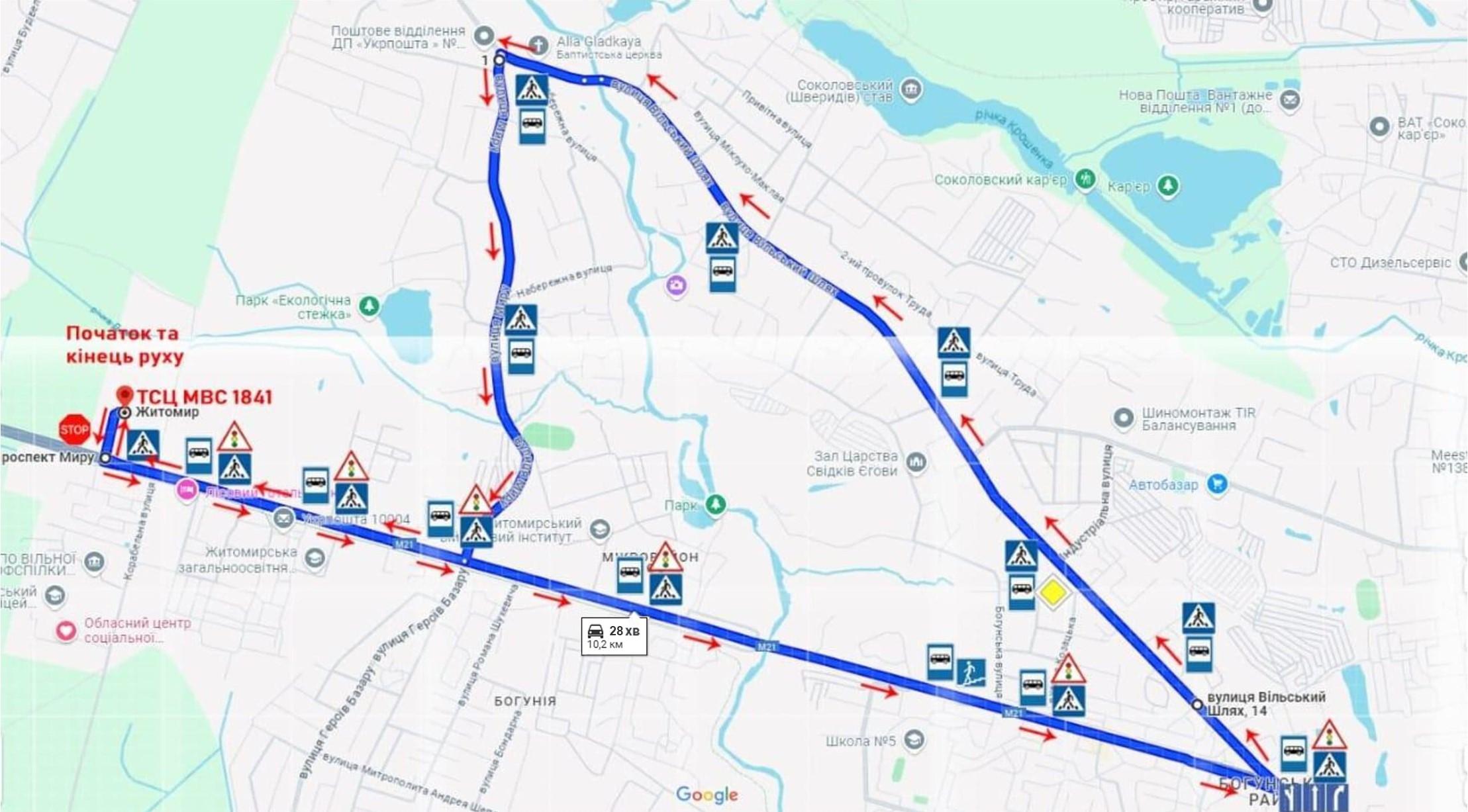 Маршрут №9 ТСЦ МВС № 1841. Для перевірки навичок керування ТЗ категорії B, D1, D, BE.