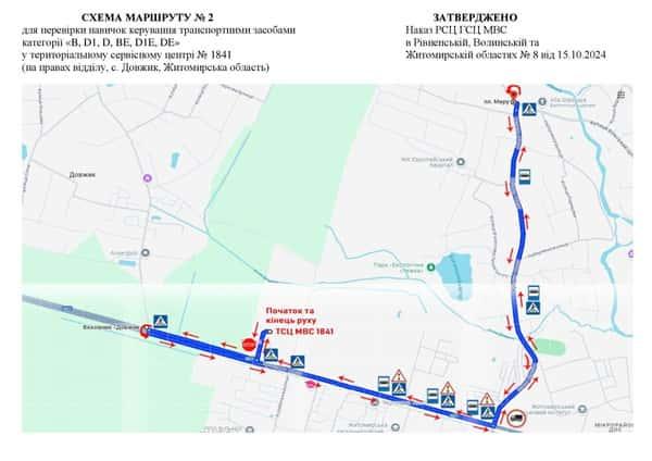 Маршрут №2 ТСЦ МВС № 1841. Для перевірки навичок керування ТЗ категорії B, D1, D, BE, D1E, DE.