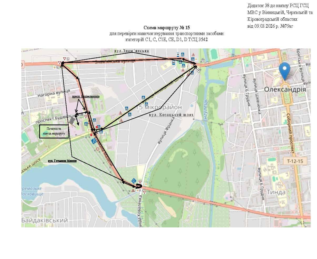 Олександрія - Маршрути для перевірки навичок керування ТЗ