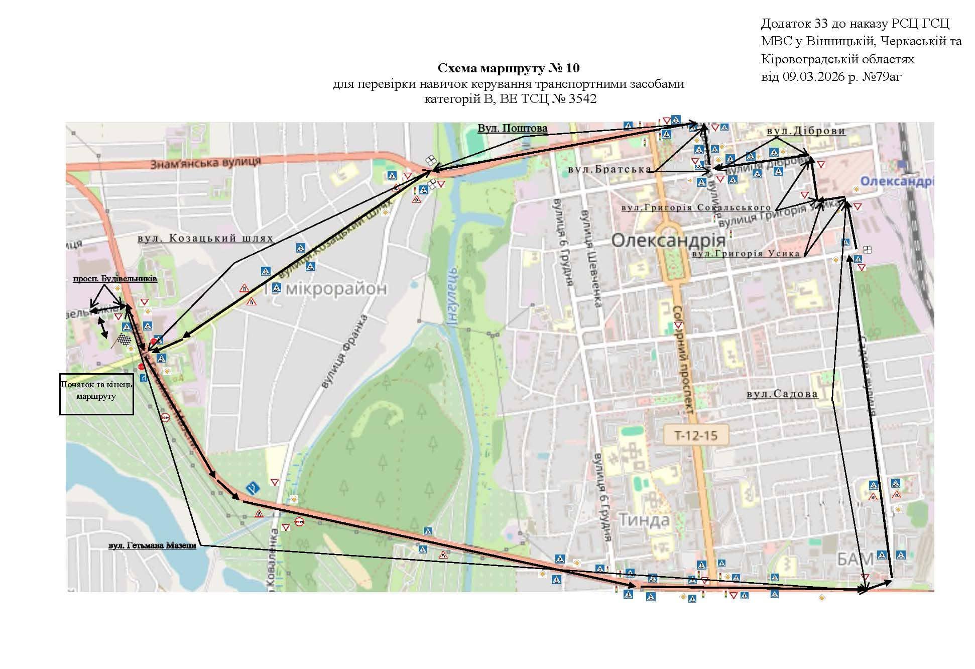 Маршрут №10 ТСЦ МВС № 3542. Для перевірки навичок керування ТЗ категорії B, BE.