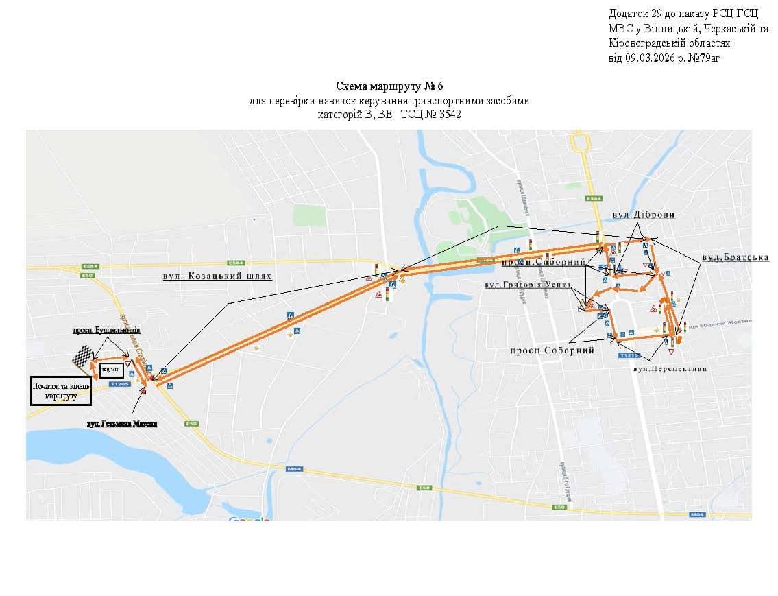 Маршрут №6 ТСЦ МВС № 3542. Для перевірки навичок керування ТЗ категорії B, BE.