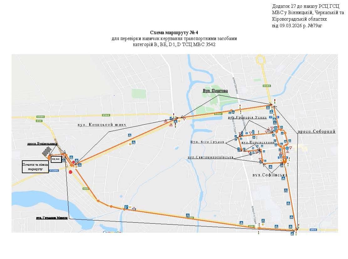 Маршрут №4 ТСЦ МВС № 3542. Для перевірки навичок керування ТЗ категорії B, BE, D1, D.