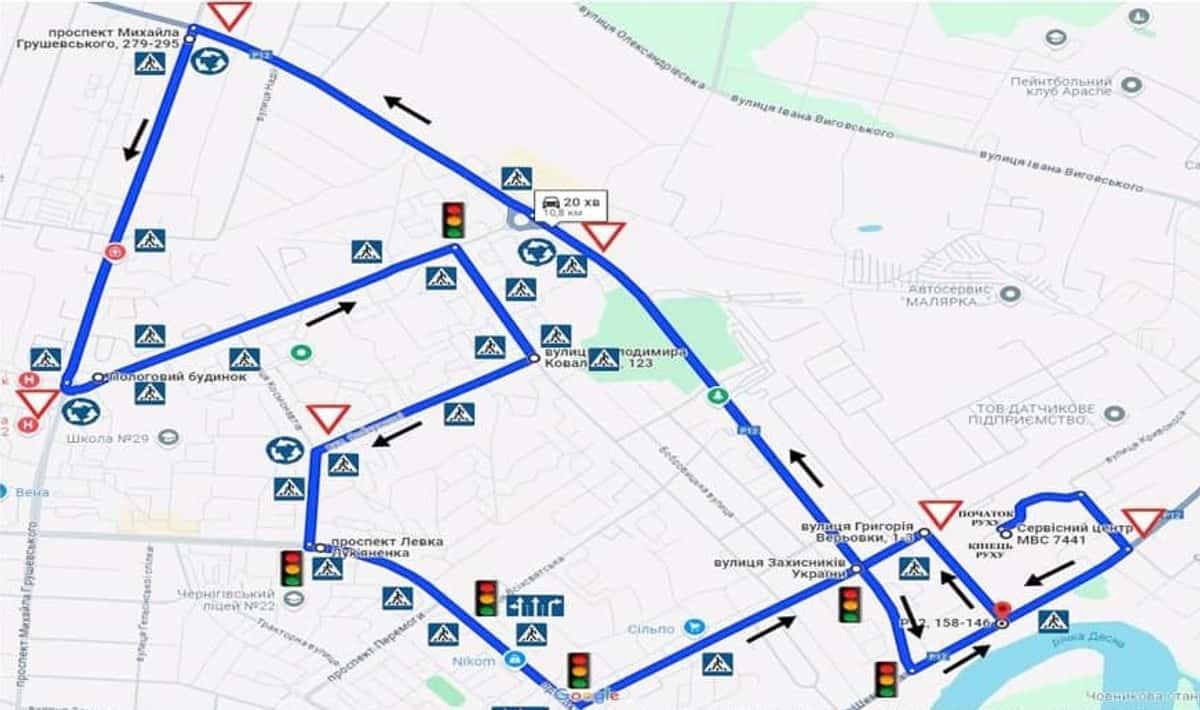 Маршрут №5 ТСЦ МВС № 7441. Для перевірки навичок керування ТЗ категорії B, BE, D1, D, D1E, DE.