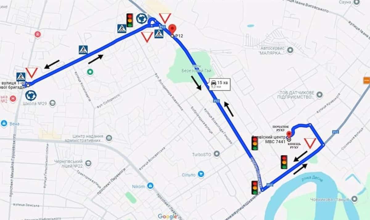 Чернігів - Маршрути для перевірки навичок керування ТЗ