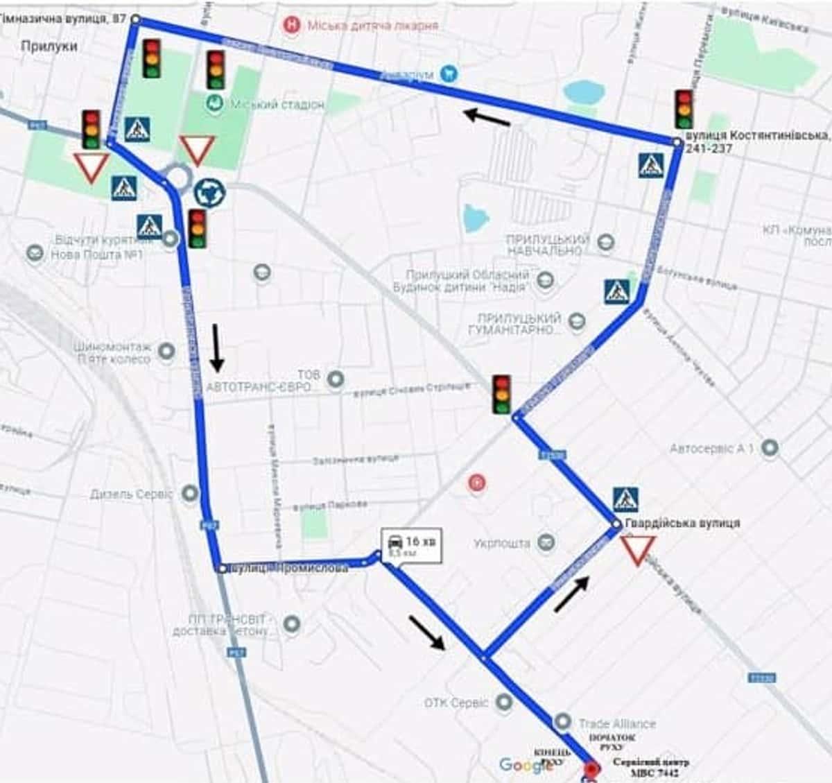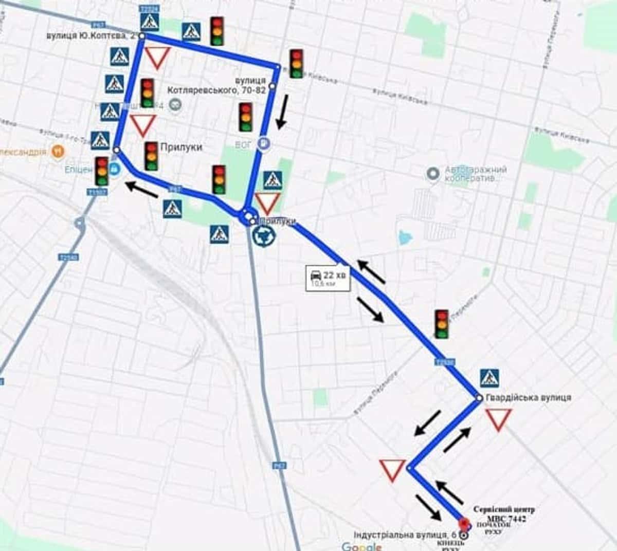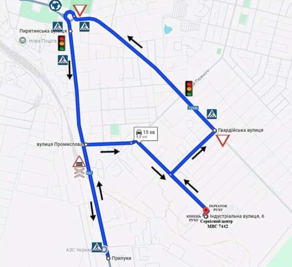 Прилуки - Маршрути для перевірки навичок керування ТЗ