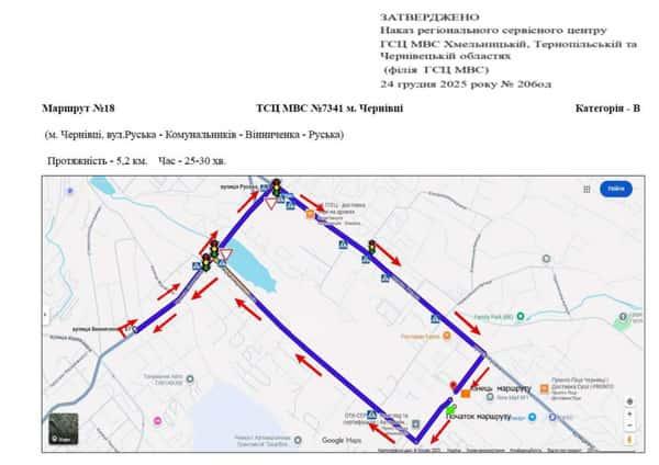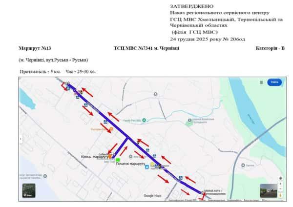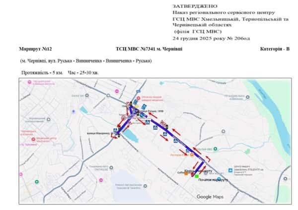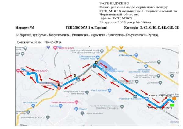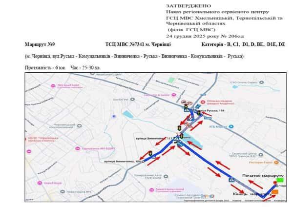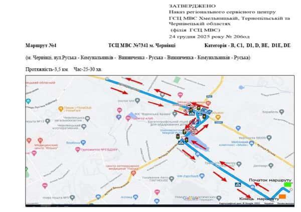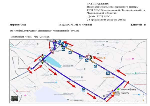 Чернівці - Маршрути для перевірки навичок керування ТЗ