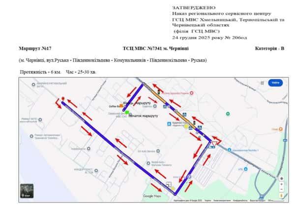 Маршрут №17 ТСЦ МВС № 7341. Для перевірки навичок керування ТЗ категорії B.