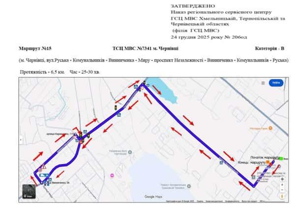 Маршрут №15 ТСЦ МВС № 7341. Для перевірки навичок керування ТЗ категорії B.