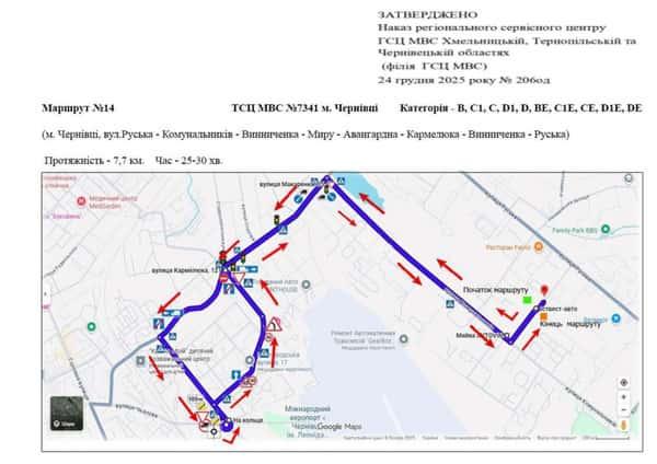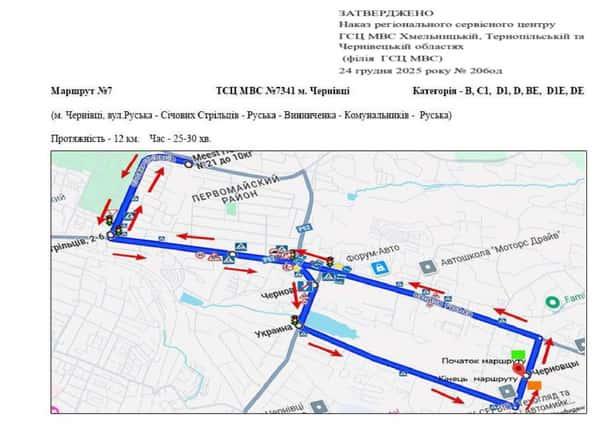Маршрут №12 ТСЦ МВС № 7341. Для перевірки навичок керування ТЗ категорії B.
