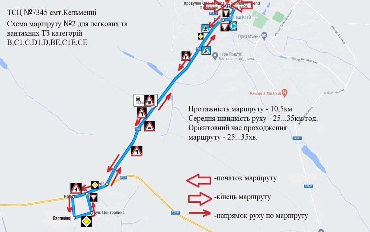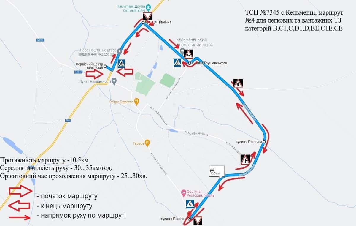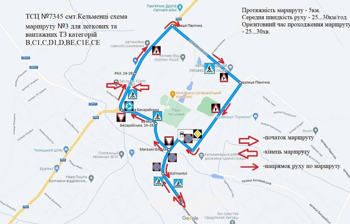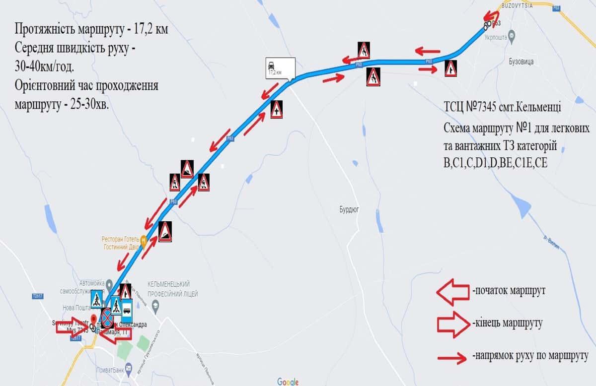 Кельменці - Маршрути для перевірки навичок керування ТЗ