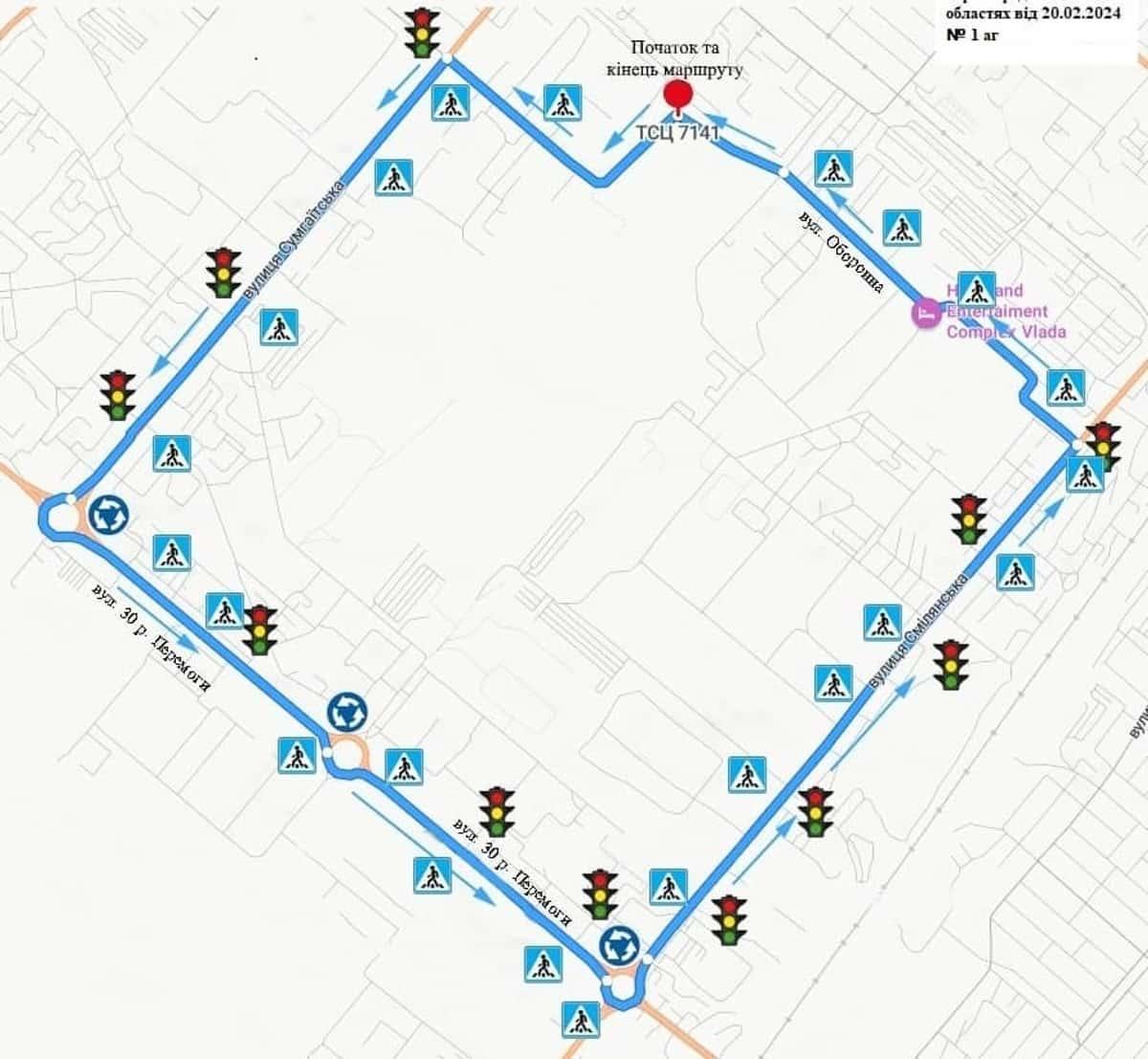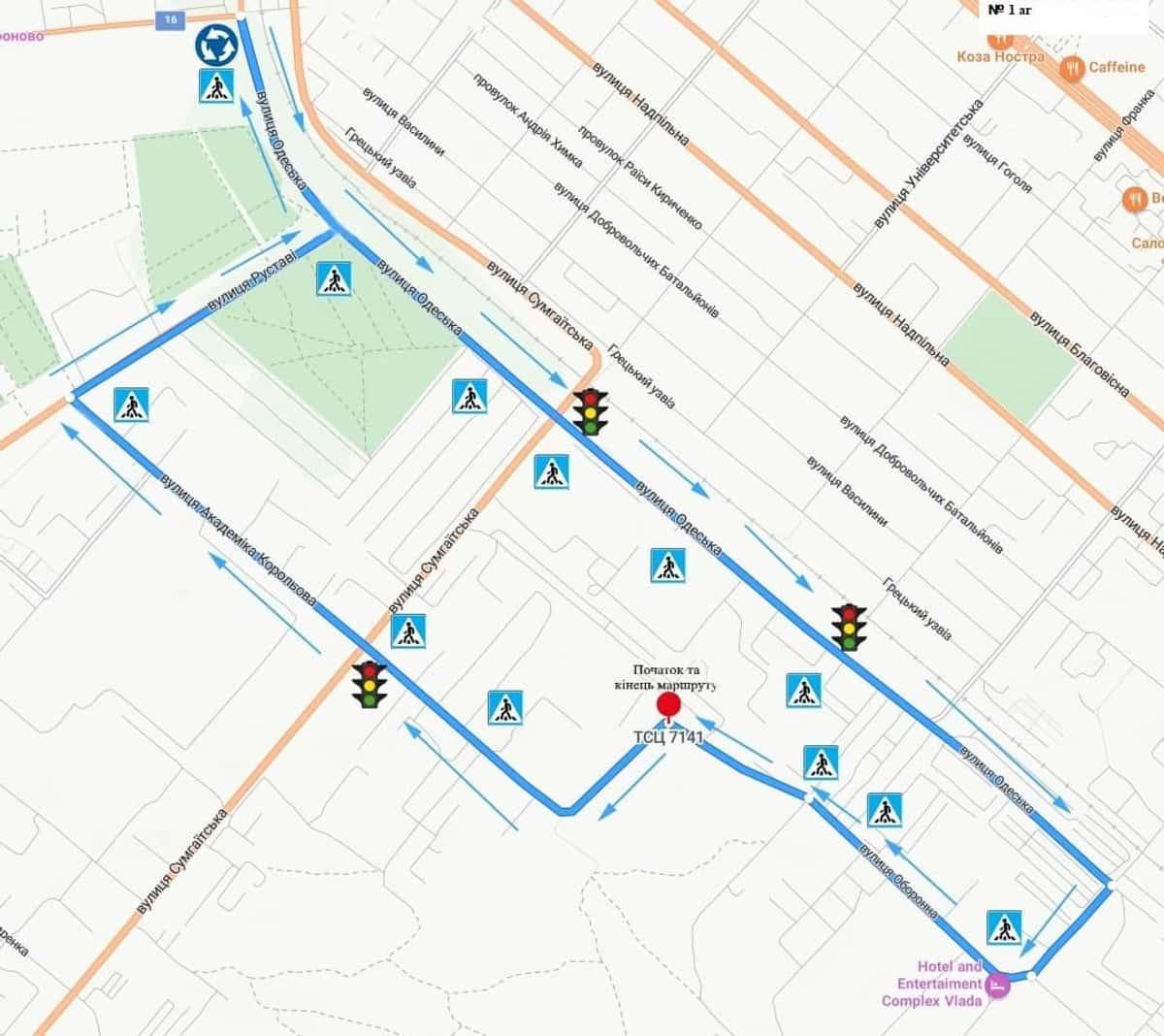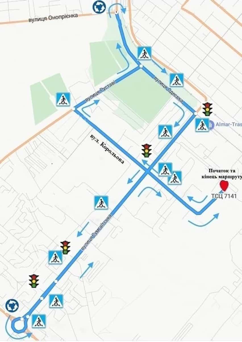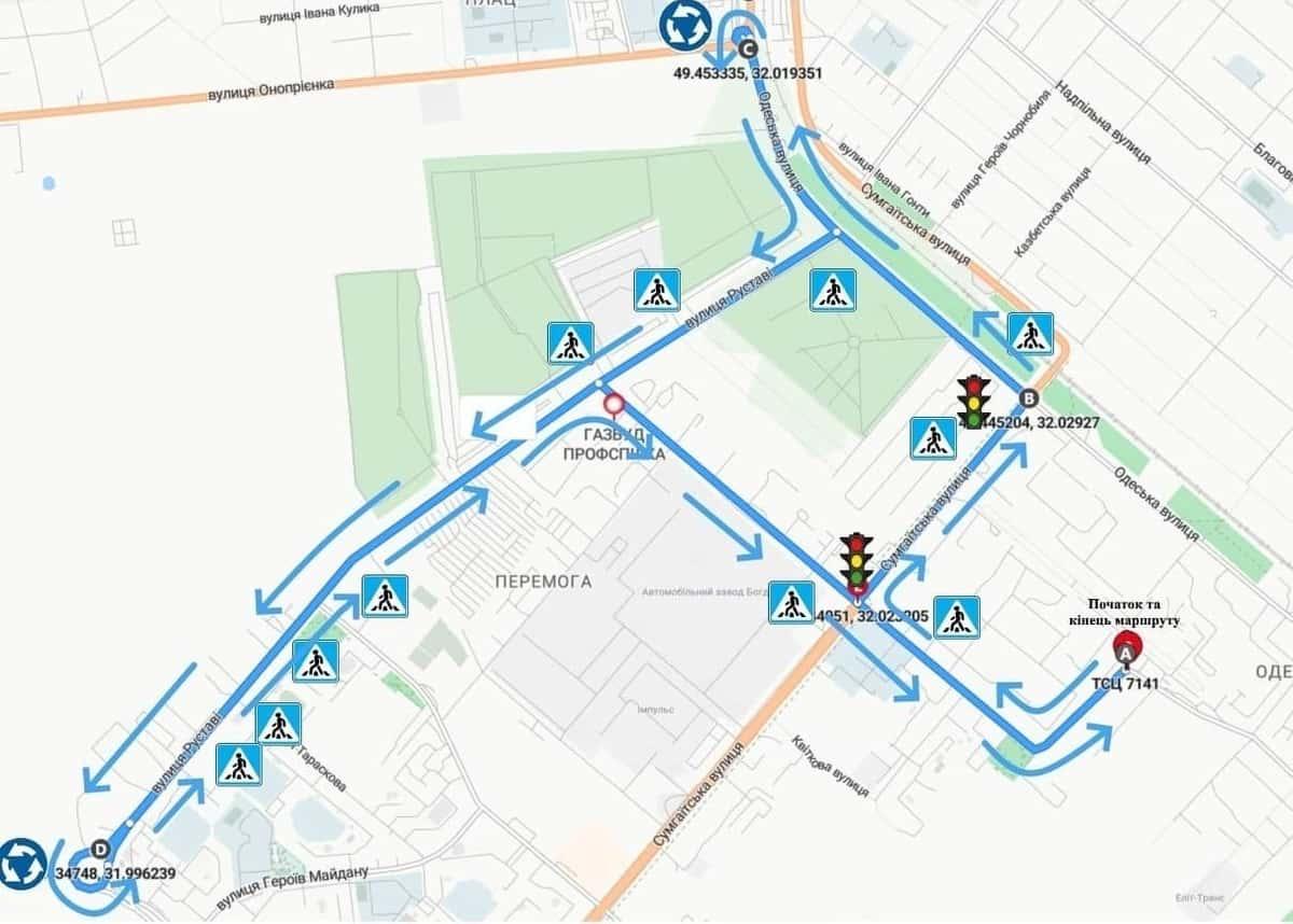 Маршрут №1 ТСЦ МВС № 7141. Для перевірки навичок керування ТЗ категорії C1, C, D1, D, BE, CE, C1E.