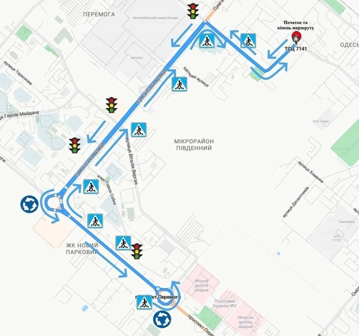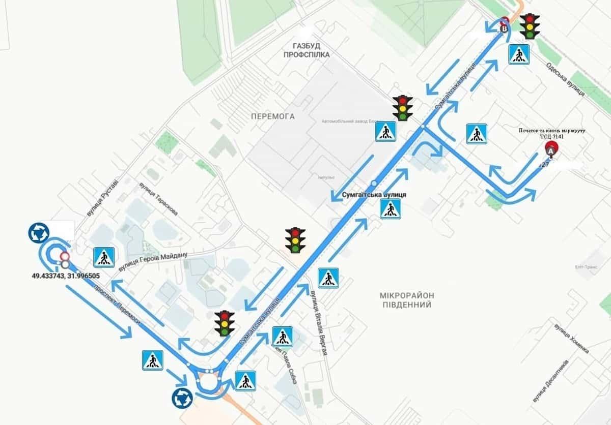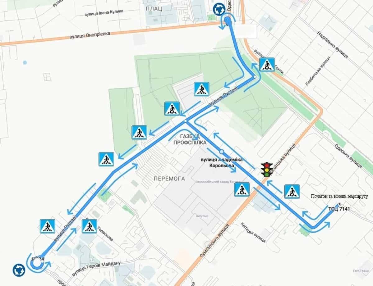Маршрут №1 ТСЦ МВС № 7141. Для перевірки навичок керування ТЗ категорії C1, C, D1, D, BE, CE, C1E.