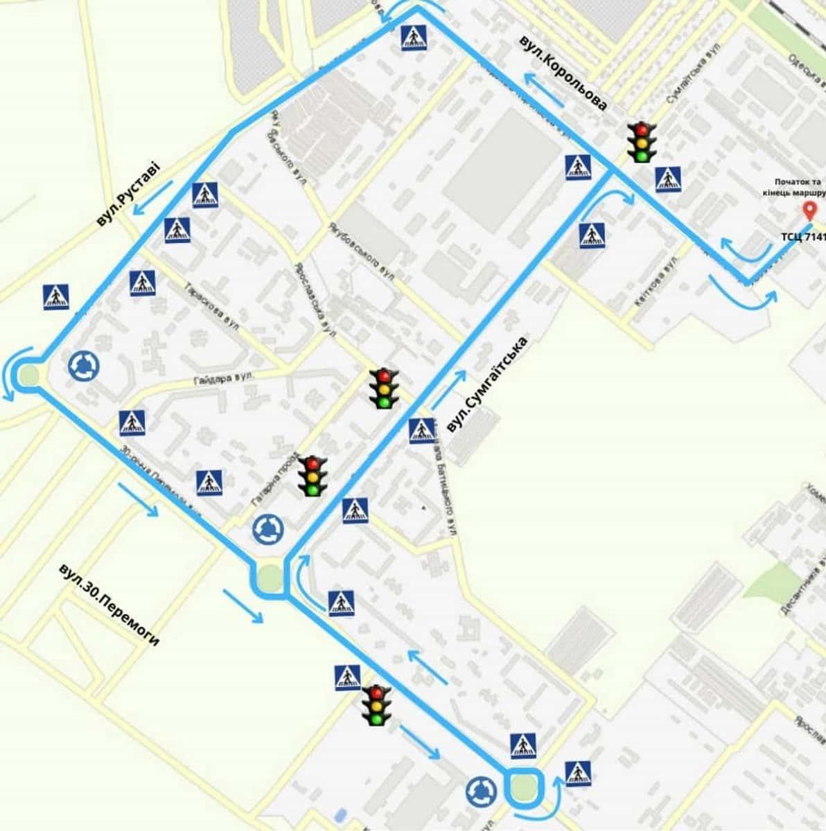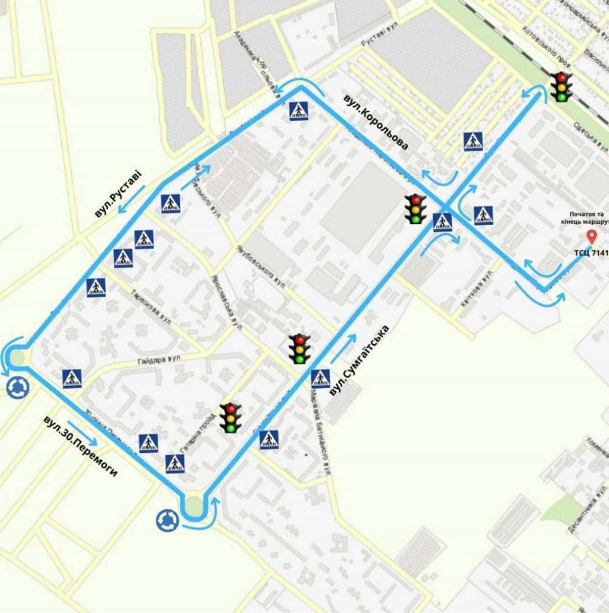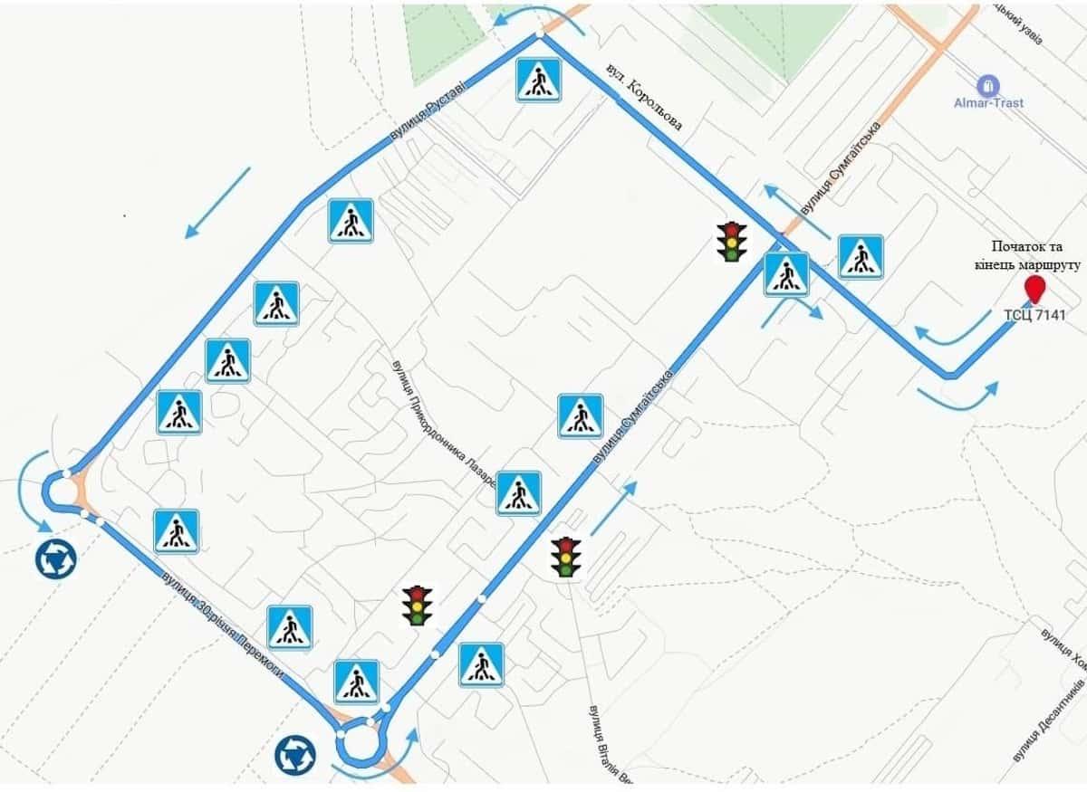 Маршрут №5 ТСЦ МВС № 7141. Для перевірки навичок керування ТЗ категорії B.