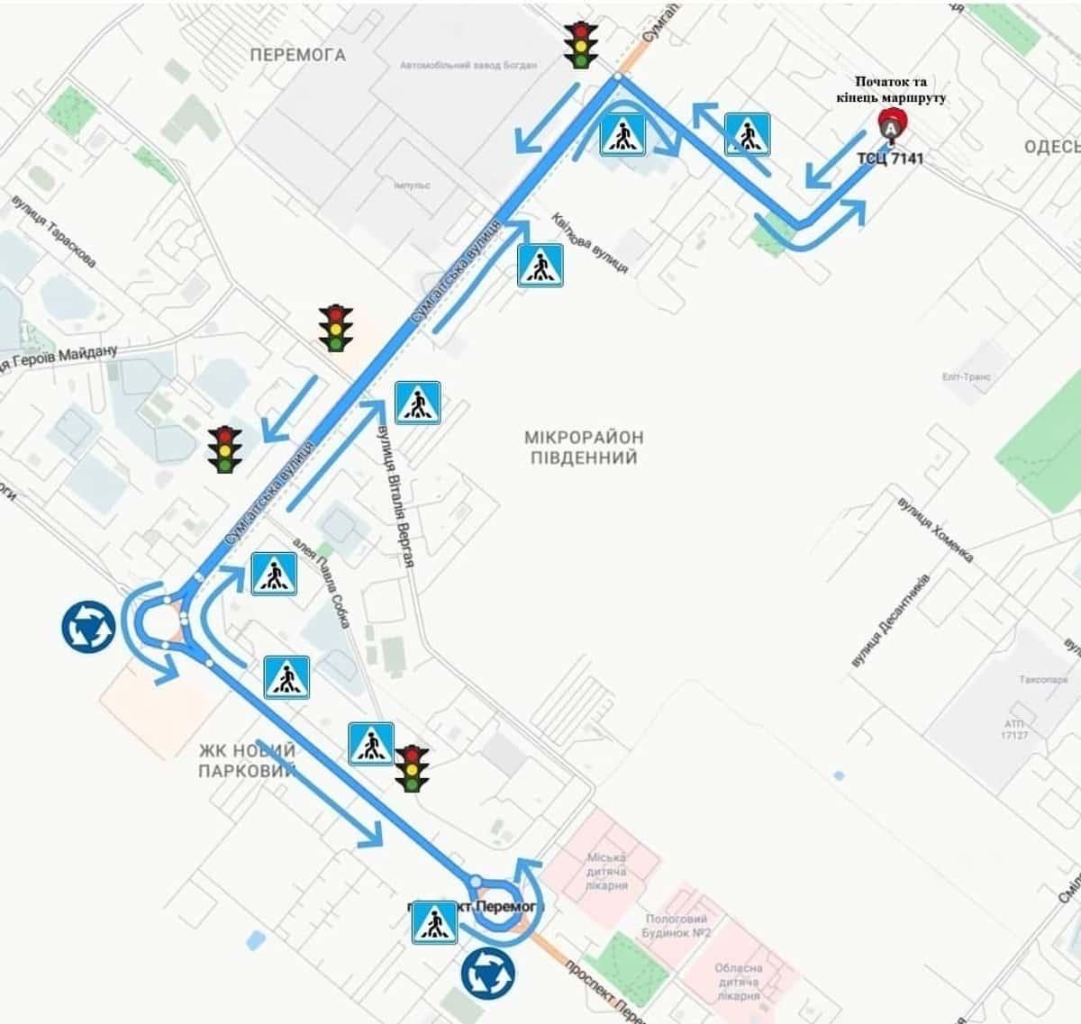 Маршрут №7 ТСЦ МВС № 7141. Для перевірки навичок керування ТЗ категорії B.