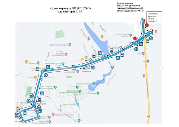 Маршрут №7 ТСЦ МВС № 7142. Для перевірки навичок керування ТЗ категорії B, BE.