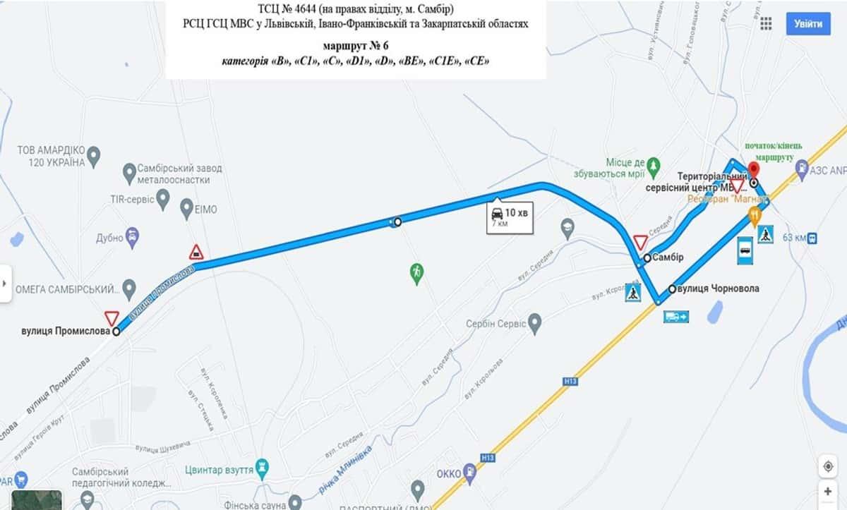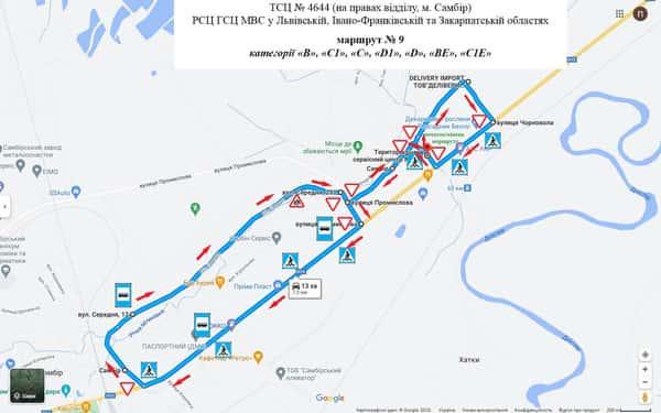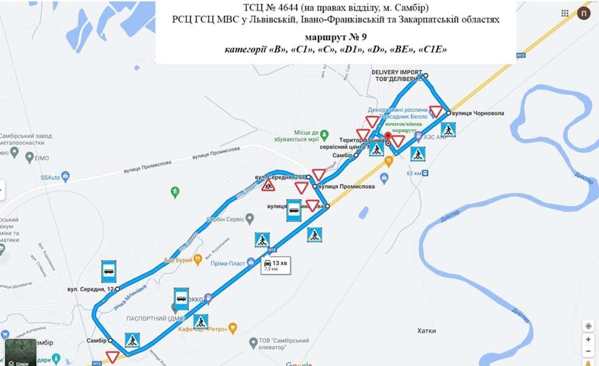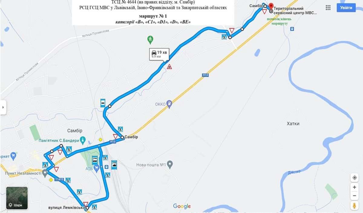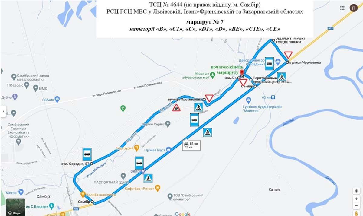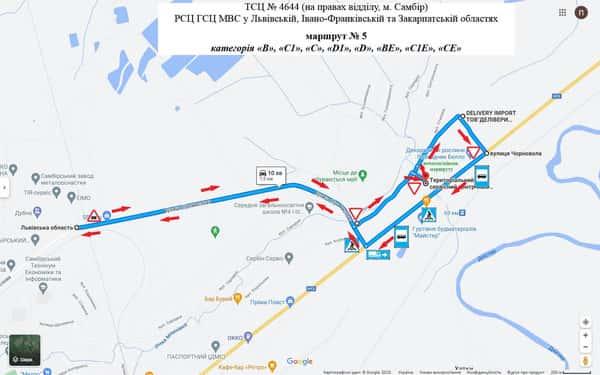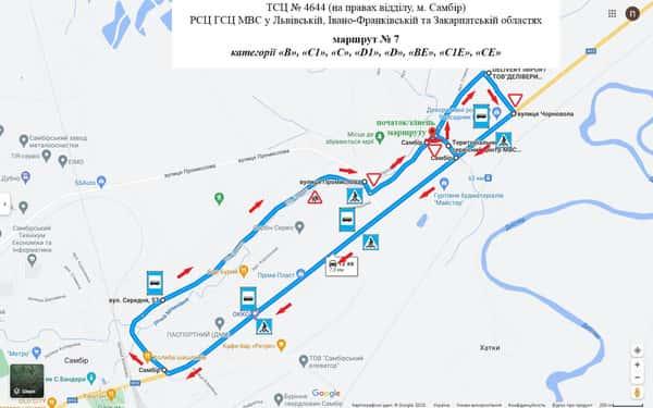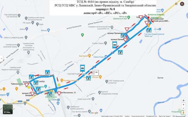 Самбір - Маршрути для перевірки навичок керування ТЗ