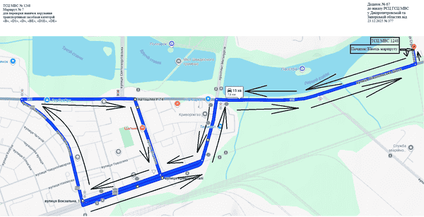 Маршрут №7 ТСЦ МВС № 1248. Для перевірки навичок керування ТЗ категорії B, BE, D1E, D1, D, DE.