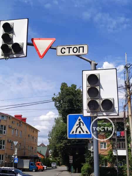 2)часто, коли регулювальник знаходиться на перехресті, спеціально вимикають світлофори. Звертайте увагу на наявність/відсутність регулювальника перед тим, як шукати знаки пріоритету;