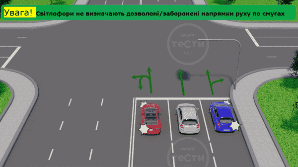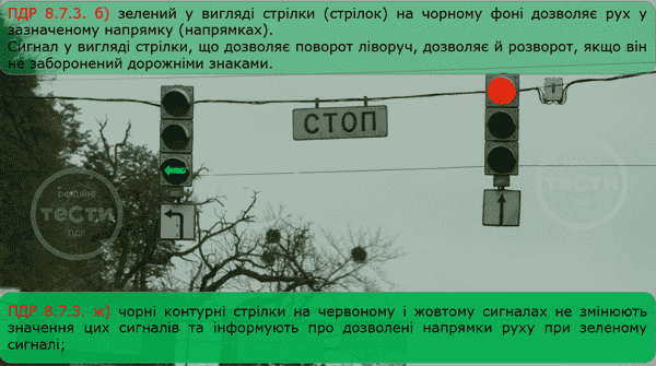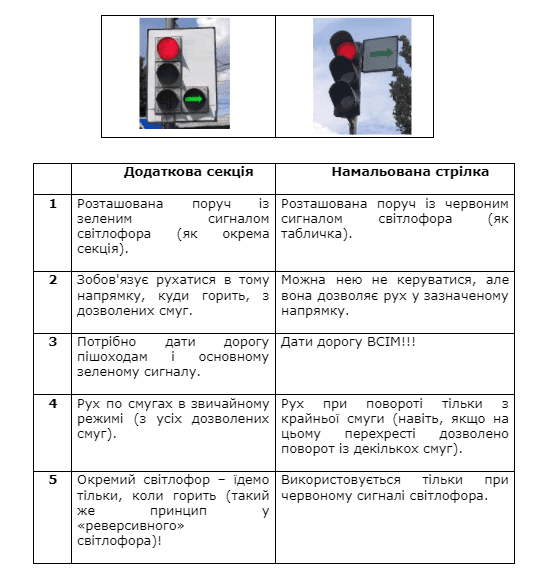 1)«жирну» стрілку водій бачить не тільки при зеленому сигналі, але й коли горить жовтий і червоний;