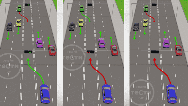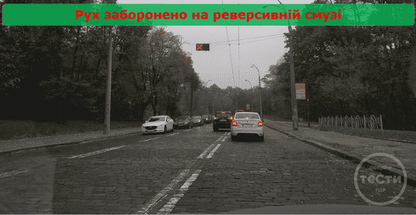 якщо зелена стрілка реверсивного світлофора погасла в той момент, коли водій рухався реверсивною смугою, у нього з’явився обов’язок покинути цю смугу, зробивши перестроювання праворуч.