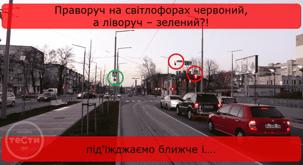 Звертаю увагу! Що при наявності на перехресті «не звичайних світлофорів» (з додатковою секцією ліворуч чи праворуч, окремих світлофорів для кожної смуги) черговість відкриття «шлюзів» для потоку транспортних засобів може бути змінено.