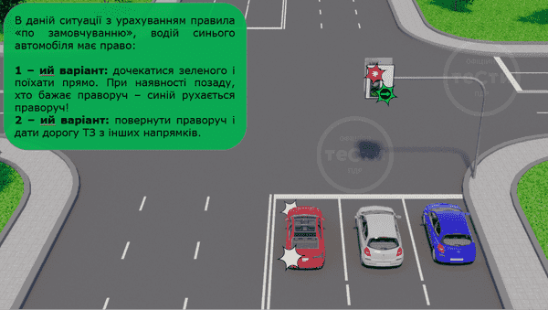 Чому водієві синього автомобіля зараз можна виконати поворот праворуч, а водієві жовтого – заборонено повертати праворуч?!