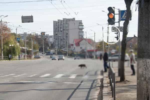 2-е завдання. Завдяки розташуванню пішохідних світлофорів, можна визначити межі пішохідного переходу без урахування розмітки, наприклад, якщо випав сніг.